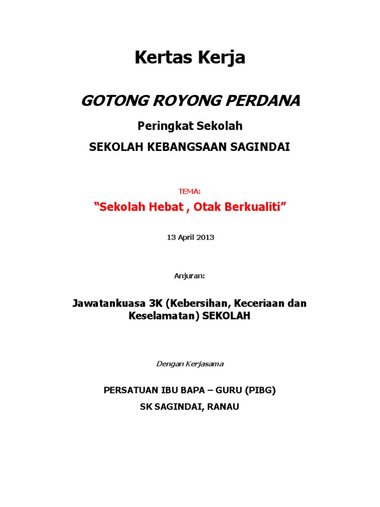 Kertas kerja gotong royong perdana 2019 pages 1 8 text version anyflip. 2), gotong royong adalah kerjasama tidak beriman salah seorang diantara kamu sampai ia mencintai saudaranya. Penetapan targe pt3 dan spm 2020. Please fill this form, we will try to respond as soon as possible. Persekitaran sekolah yang bersih dan ceria dapat membantu mempertingkatkan proses pengajaran dan pembelajaran dengan lebih berkesan dan efektif.