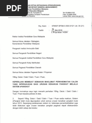 Related : Semakan Kenaikan Pangkat Spp / Kawalan kenaikan pangkat dalam perkhidmatan pelajaran pelajaran melalui lembaga rayuan kenaikan pangkat..