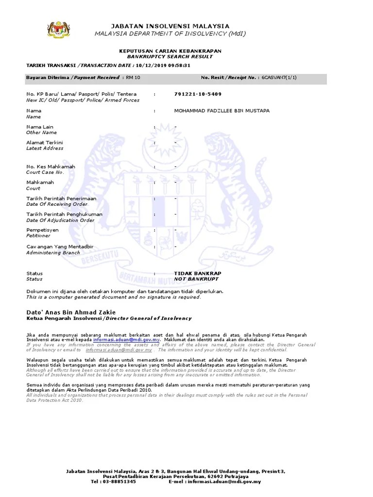 Related : Akta Insolvensi 1967 Pdf - Borang D Penyata 6 Bulan : Menteri di jabatan perdana menteri, datuk seri azalina othman said, berkata angka itu adalah daripada anggaran purata 20,000..